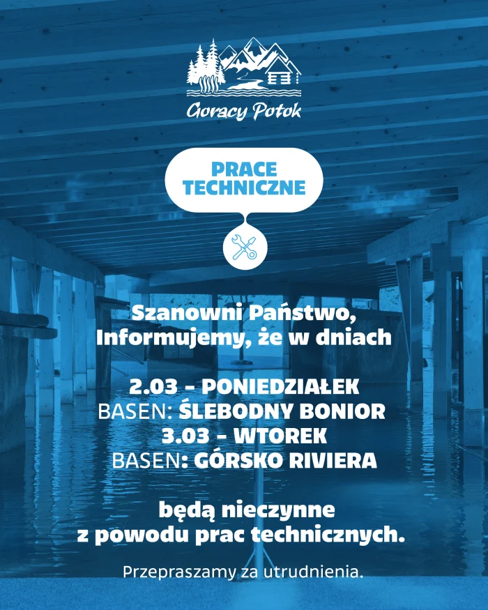 Termy Gorący Potok to kompleks kilkunastu unikalnych basenów zewnętrznych z naturalną, surową wodą siarkową, w których każdy znajdzie atrakcje dla siebie. Dla gości udostępnionych jest 21 niecek basenowych o różnej charakterystyce. Fontanny, masaże wodne i gejzery, jacuzzi zjeżdżalnie oraz strefa dziecięca. Baseny napełnione są siarkową wodą termalną o temperaturze 34-40°C, dlatego nawet w zimowe dni można doświadczyć niepowtarzalnego relaksu.
