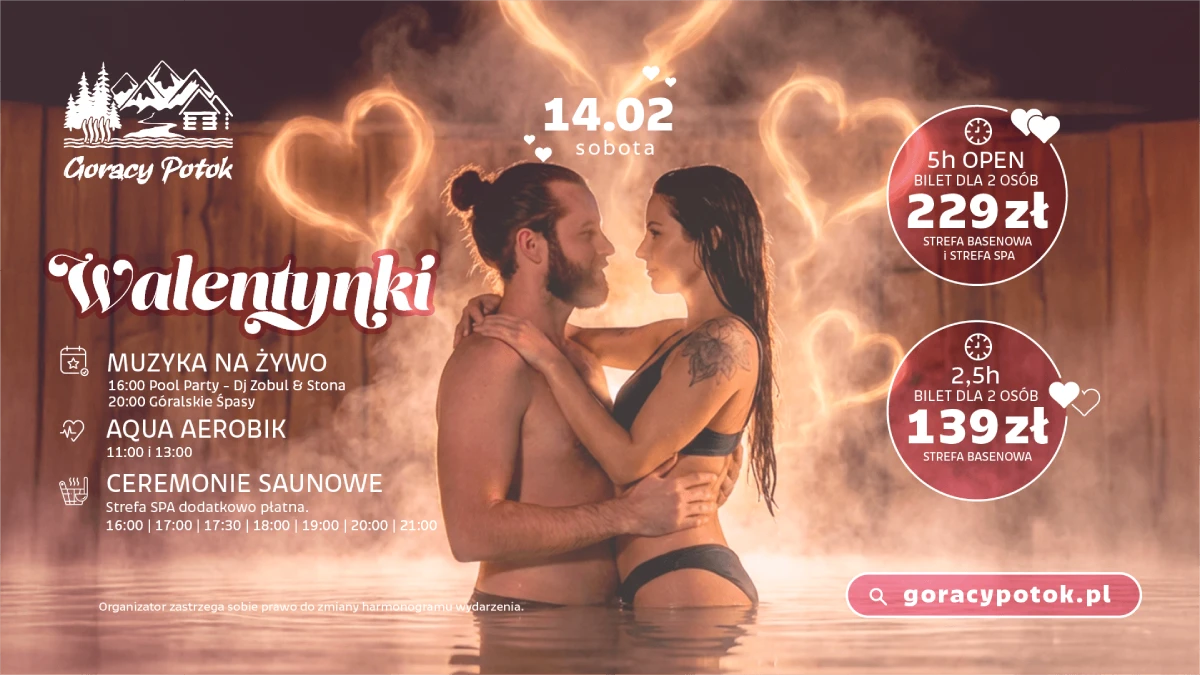 14 lutego (sobota) – Walentynkowe Pool Party – najgorętsza impreza walentynkowa na Podhalu!