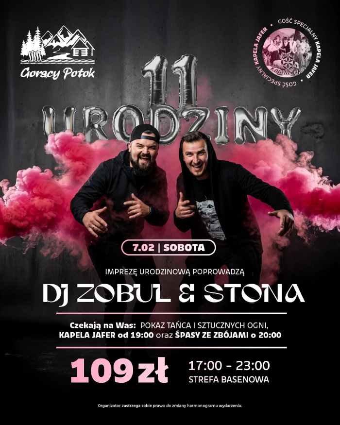 Impreza w strefie basenowej zacznie się o 17:00 i potrwa do 23:00, a poprowadzą ją DJ Zobul & Stona. Ich sety to gwarancja tanecznego klimatu i dobrej energii, idealnie wpisującej się w urodzinową atmosferę Term Gorący Potok. Muzyka, gorąca woda geotermalna i zimowe powietrze nad basenami tworzą klimat, który trudno porównać z czymkolwiek innym – zwłaszcza gdy nad taflą wody unosi się para, a baseny są nastrojowo podświetlone.