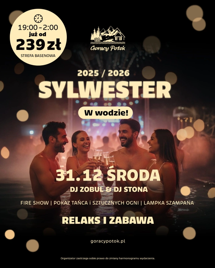 Sylwester 2025 / 2026 w Termach Gorący Potok to połączenie relaksu, dobrej zabawy i klimatu, którego nie znajdziesz nigdzie indziej.