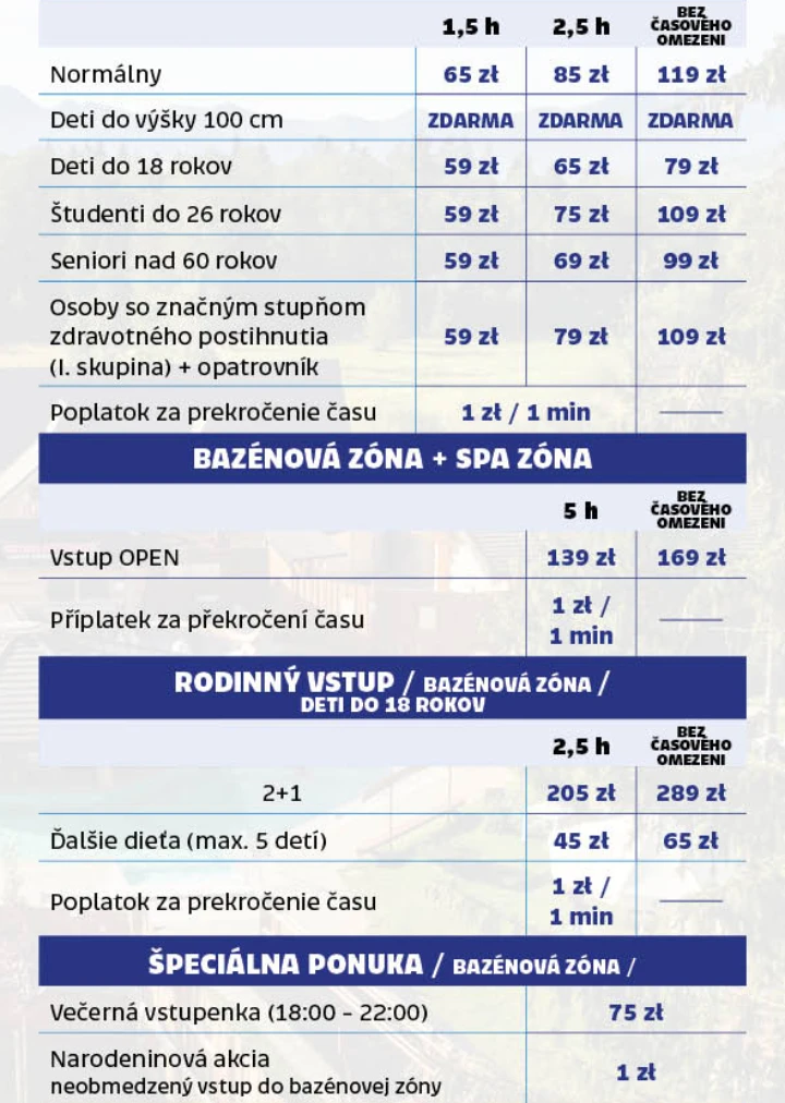 Zľavové kupóny nezahŕňajú vstupenky OPEN, špeciálne ponuky, SPA zónu a rodinné vstupenky.